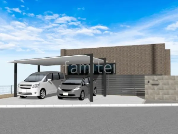 スタイリッシュなカーポートが魅力的な新築シンプル セミクローズ外構