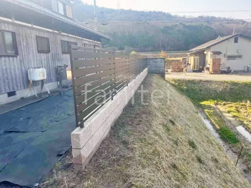 アルミ形材 フェンス YKKAP シンプレオYS3型 横スリット 目隠し ブロック塀 (化粧ブロック) ユニソン シャモティ