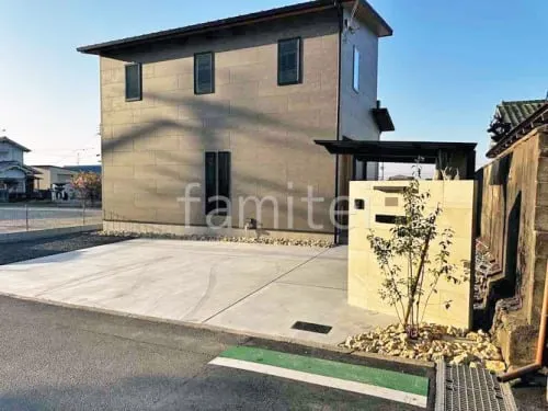 門柱 壁タイル貼り LIXIL アヴァンティ 郵便受けポスト エクスポストS-3型 シンボルツリー ソヨゴ 常緑樹 植栽 ロックガーデン 栗石敷き ゴールドロック